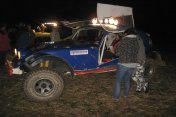 Startovní kopec jsem sbíhal s Ladou, odstartovali jsme jako nejrychlejší velké auto a za buginkou a malým KB. To se brzy utopilo v bahně a tak jsem si sám diktoval tempo. Soupeři byli hodně daleko a tak jsem mohl jet v klidu. No ale asi v půlce okruhu jsem stejně jako v loni udělal na kaluži dětskou chybu a skončil v křoví a polovina startovního pole mě předjela. I když jsem chtěl jet udržovací jízdu, musel jsem zrychlit a po 2. kole už jsem byl druhý a v 7. kole už jsem vedl celé závodní pole. První místo jsme si udrželi i když jsme 2x preventivně měnili polybuše v přední a pak v zadní panhardce, řešili dva defekty a na rozdíl od soupeřů střídali už po 2 hodinách. Když se nám ve 2 hodiny v noci roztrhl kardan, dostal se do čela Valtr. I on se potýkal s drobnými technickými problémy, ale oab jsme měli dostatečná náskok na třetího a další soupeře. Když se nám dopoledne pokazila kardanka řízení, zvýšil Valtr náskok na 3 kola. Čtyři hodiny před koncem střídal Honza s Ladou a protože Valtr kvůli technice zpomalil, bylo rozhodnuto, že dají celé 4 hodiny a nebudeme ztrácet střídáním. Podařilo se jim stáhnout na rozdíl 1 kola a tak se muselo rozhodnout v posledních 20 minutách. Pak se na nás po letech usmálo štěstí (nebo smůla potkala Valtra?) a bezchybně fungující Brouček předjel technickou závadou stojící žlutý Jeep Valtra. Honza mohl s velkou slávou dojet na 1.místě v kategorii Auta nad 2000 ccm a celý tým mohl slavit. SUPER.