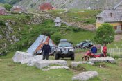 Odpoledne se na start postavily auta a byl to tvrdý boj. Trať byla hodně dlouhá, bez extrémních sjezdů, výjezdů a bláta. My jsme si opět vybrali svou porci smůly. V kategorii velkých i malých aut všichni od 1. až do 4. místa byli v kole a rozhodoval jen čas. Pepe v prvním kole vytrhl disk a pak odešel ventilátor a ztáta už nešla dojet. Vitarka měla smůly také kopec, ta ale souvisela s "dětskými nemocmi", je to vpodstatě nové auto. Nejprve nedržela přední kapota, pak defekt, po pár kolech nám vypadlo z úchytu plynové lanko a nakonec se povolily matice na kole, šroby se vytrhly z náboje a oprava trvala víc jak půl hodiny. Jinak auto šlapalo jako hodinky.