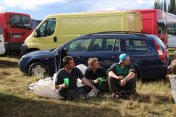 Brouček jezdil skvěle, ale doplatil opět na to, že na závodech nemá dostatek náhradních dílů. Ze startovního kopce jsem běžel já s Pavluš, střídal mě Tomáš se Štěpánem, v noci jsem jezdil s Erikem, který v poledne už co by řidič dojel se Štěpánem na krásném 3. místě. Ale zpět na začátek. Já tedy startoval, myslím že jsme i se soupeři od počátku auta šetřili, i když někdo říká, že jsem lítal s Broukem s kolama metr ve vzduchu. Když jel Tomáš, tak se Brouček zastavil. Nejprve se ukroutil unašeč na přední nápravě, jel pouze na zadek a když se roztrhl kardanový kříž (ten jsem asi načnul já), tak už nebylo jak jet dál. Jak už jsem psal, problém s náhradními díly, neměli jsme ani unašeč ani kardan. Tonda vše vymontoval, od Wogáčů jsem půjčil kříž a Erik nejprve navařil kříž, pak svařil unašeč a my se ztrátou víc jak hodiny (asi 7 kol) pokračovali dál. Normálně by to byla oprava na pár minut, max. 2 kola a mohli jsem ještě bojovat o 2 místo. Další problémy už se nám vyhnuly, sice se nám rozpadaly všechny polské silembloky, takže jsme chrastili jak řehtačka, ale dojeli jsme, unaveni, ale na krásném třetím místě.