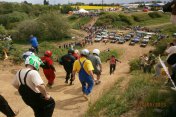 Startovní kopec jsem sbíhal s Ladou, odstartovali jsme jako nejrychlejší velké auto a za buginkou a malým KB. To se brzy utopilo v bahně a tak jsem si sám diktoval tempo. Soupeři byli hodně daleko a tak jsem mohl jet v klidu. No ale asi v půlce okruhu jsem stejně jako v loni udělal na kaluži dětskou chybu a skončil v křoví a polovina startovního pole mě předjela. I když jsem chtěl jet udržovací jízdu, musel jsem zrychlit a po 2. kole už jsem byl druhý a v 7. kole už jsem vedl celé závodní pole. První místo jsme si udrželi i když jsme 2x preventivně měnili polybuše v přední a pak v zadní panhardce, řešili dva defekty a na rozdíl od soupeřů střídali už po 2 hodinách. Když se nám ve 2 hodiny v noci roztrhl kardan, dostal se do čela Valtr. I on se potýkal s drobnými technickými problémy, ale oab jsme měli dostatečná náskok na třetího a další soupeře. Když se nám dopoledne pokazila kardanka řízení, zvýšil Valtr náskok na 3 kola. Čtyři hodiny před koncem střídal Honza s Ladou a protože Valtr kvůli technice zpomalil, bylo rozhodnuto, že dají celé 4 hodiny a nebudeme ztrácet střídáním. Podařilo se jim stáhnout na rozdíl 1 kola a tak se muselo rozhodnout v posledních 20 minutách. Pak se na nás po letech usmálo štěstí (nebo smůla potkala Valtra?) a bezchybně fungující Brouček předjel technickou závadou stojící žlutý Jeep Valtra. Honza mohl s velkou slávou dojet na 1.místě v kategorii Auta nad 2000 ccm a celý tým mohl slavit. SUPER.
