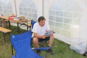 Startovní kopec jsem sbíhal s Ladou, odstartovali jsme jako nejrychlejší velké auto a za buginkou a malým KB. To se brzy utopilo v bahně a tak jsem si sám diktoval tempo. Soupeři byli hodně daleko a tak jsem mohl jet v klidu. No ale asi v půlce okruhu jsem stejně jako v loni udělal na kaluži dětskou chybu a skončil v křoví a polovina startovního pole mě předjela. I když jsem chtěl jet udržovací jízdu, musel jsem zrychlit a po 2. kole už jsem byl druhý a v 7. kole už jsem vedl celé závodní pole. První místo jsme si udrželi i když jsme 2x preventivně měnili polybuše v přední a pak v zadní panhardce, řešili dva defekty a na rozdíl od soupeřů střídali už po 2 hodinách. Když se nám ve 2 hodiny v noci roztrhl kardan, dostal se do čela Valtr. I on se potýkal s drobnými technickými problémy, ale oab jsme měli dostatečná náskok na třetího a další soupeře. Když se nám dopoledne pokazila kardanka řízení, zvýšil Valtr náskok na 3 kola. Čtyři hodiny před koncem střídal Honza s Ladou a protože Valtr kvůli technice zpomalil, bylo rozhodnuto, že dají celé 4 hodiny a nebudeme ztrácet střídáním. Podařilo se jim stáhnout na rozdíl 1 kola a tak se muselo rozhodnout v posledních 20 minutách. Pak se na nás po letech usmálo štěstí (nebo smůla potkala Valtra?) a bezchybně fungující Brouček předjel technickou závadou stojící žlutý Jeep Valtra. Honza mohl s velkou slávou dojet na 1.místě v kategorii Auta nad 2000 ccm a celý tým mohl slavit. SUPER.