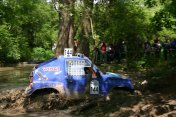 Startovní kopec jsem sbíhal s Ladou, odstartovali jsme jako nejrychlejší velké auto a za buginkou a malým KB. To se brzy utopilo v bahně a tak jsem si sám diktoval tempo. Soupeři byli hodně daleko a tak jsem mohl jet v klidu. No ale asi v půlce okruhu jsem stejně jako v loni udělal na kaluži dětskou chybu a skončil v křoví a polovina startovního pole mě předjela. I když jsem chtěl jet udržovací jízdu, musel jsem zrychlit a po 2. kole už jsem byl druhý a v 7. kole už jsem vedl celé závodní pole. První místo jsme si udrželi i když jsme 2x preventivně měnili polybuše v přední a pak v zadní panhardce, řešili dva defekty a na rozdíl od soupeřů střídali už po 2 hodinách. Když se nám ve 2 hodiny v noci roztrhl kardan, dostal se do čela Valtr. I on se potýkal s drobnými technickými problémy, ale oab jsme měli dostatečná náskok na třetího a další soupeře. Když se nám dopoledne pokazila kardanka řízení, zvýšil Valtr náskok na 3 kola. Čtyři hodiny před koncem střídal Honza s Ladou a protože Valtr kvůli technice zpomalil, bylo rozhodnuto, že dají celé 4 hodiny a nebudeme ztrácet střídáním. Podařilo se jim stáhnout na rozdíl 1 kola a tak se muselo rozhodnout v posledních 20 minutách. Pak se na nás po letech usmálo štěstí (nebo smůla potkala Valtra?) a bezchybně fungující Brouček předjel technickou závadou stojící žlutý Jeep Valtra. Honza mohl s velkou slávou dojet na 1.místě v kategorii Auta nad 2000 ccm a celý tým mohl slavit. SUPER.