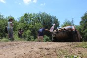 Startovní kopec jsem sbíhal s Ladou, odstartovali jsme jako nejrychlejší velké auto a za buginkou a malým KB. To se brzy utopilo v bahně a tak jsem si sám diktoval tempo. Soupeři byli hodně daleko a tak jsem mohl jet v klidu. No ale asi v půlce okruhu jsem stejně jako v loni udělal na kaluži dětskou chybu a skončil v křoví a polovina startovního pole mě předjela. I když jsem chtěl jet udržovací jízdu, musel jsem zrychlit a po 2. kole už jsem byl druhý a v 7. kole už jsem vedl celé závodní pole. První místo jsme si udrželi i když jsme 2x preventivně měnili polybuše v přední a pak v zadní panhardce, řešili dva defekty a na rozdíl od soupeřů střídali už po 2 hodinách. Když se nám ve 2 hodiny v noci roztrhl kardan, dostal se do čela Valtr. I on se potýkal s drobnými technickými problémy, ale oab jsme měli dostatečná náskok na třetího a další soupeře. Když se nám dopoledne pokazila kardanka řízení, zvýšil Valtr náskok na 3 kola. Čtyři hodiny před koncem střídal Honza s Ladou a protože Valtr kvůli technice zpomalil, bylo rozhodnuto, že dají celé 4 hodiny a nebudeme ztrácet střídáním. Podařilo se jim stáhnout na rozdíl 1 kola a tak se muselo rozhodnout v posledních 20 minutách. Pak se na nás po letech usmálo štěstí (nebo smůla potkala Valtra?) a bezchybně fungující Brouček předjel technickou závadou stojící žlutý Jeep Valtra. Honza mohl s velkou slávou dojet na 1.místě v kategorii Auta nad 2000 ccm a celý tým mohl slavit. SUPER.