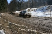 Startovní kopec jsem sbíhal s Ladou, odstartovali jsme jako nejrychlejší velké auto a za buginkou a malým KB. To se brzy utopilo v bahně a tak jsem si sám diktoval tempo. Soupeři byli hodně daleko a tak jsem mohl jet v klidu. No ale asi v půlce okruhu jsem stejně jako v loni udělal na kaluži dětskou chybu a skončil v křoví a polovina startovního pole mě předjela. I když jsem chtěl jet udržovací jízdu, musel jsem zrychlit a po 2. kole už jsem byl druhý a v 7. kole už jsem vedl celé závodní pole. První místo jsme si udrželi i když jsme 2x preventivně měnili polybuše v přední a pak v zadní panhardce, řešili dva defekty a na rozdíl od soupeřů střídali už po 2 hodinách. Když se nám ve 2 hodiny v noci roztrhl kardan, dostal se do čela Valtr. I on se potýkal s drobnými technickými problémy, ale oab jsme měli dostatečná náskok na třetího a další soupeře. Když se nám dopoledne pokazila kardanka řízení, zvýšil Valtr náskok na 3 kola. Čtyři hodiny před koncem střídal Honza s Ladou a protože Valtr kvůli technice zpomalil, bylo rozhodnuto, že dají celé 4 hodiny a nebudeme ztrácet střídáním. Podařilo se jim stáhnout na rozdíl 1 kola a tak se muselo rozhodnout v posledních 20 minutách. Pak se na nás po letech usmálo štěstí (nebo smůla potkala Valtra?) a bezchybně fungující Brouček předjel technickou závadou stojící žlutý Jeep Valtra. Honza mohl s velkou slávou dojet na 1.místě v kategorii Auta nad 2000 ccm a celý tým mohl slavit. SUPER.