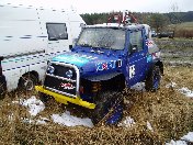 Startovní kopec jsem sbíhal s Ladou, odstartovali jsme jako nejrychlejší velké auto a za buginkou a malým KB. To se brzy utopilo v bahně a tak jsem si sám diktoval tempo. Soupeři byli hodně daleko a tak jsem mohl jet v klidu. No ale asi v půlce okruhu jsem stejně jako v loni udělal na kaluži dětskou chybu a skončil v křoví a polovina startovního pole mě předjela. I když jsem chtěl jet udržovací jízdu, musel jsem zrychlit a po 2. kole už jsem byl druhý a v 7. kole už jsem vedl celé závodní pole. První místo jsme si udrželi i když jsme 2x preventivně měnili polybuše v přední a pak v zadní panhardce, řešili dva defekty a na rozdíl od soupeřů střídali už po 2 hodinách. Když se nám ve 2 hodiny v noci roztrhl kardan, dostal se do čela Valtr. I on se potýkal s drobnými technickými problémy, ale oab jsme měli dostatečná náskok na třetího a další soupeře. Když se nám dopoledne pokazila kardanka řízení, zvýšil Valtr náskok na 3 kola. Čtyři hodiny před koncem střídal Honza s Ladou a protože Valtr kvůli technice zpomalil, bylo rozhodnuto, že dají celé 4 hodiny a nebudeme ztrácet střídáním. Podařilo se jim stáhnout na rozdíl 1 kola a tak se muselo rozhodnout v posledních 20 minutách. Pak se na nás po letech usmálo štěstí (nebo smůla potkala Valtra?) a bezchybně fungující Brouček předjel technickou závadou stojící žlutý Jeep Valtra. Honza mohl s velkou slávou dojet na 1.místě v kategorii Auta nad 2000 ccm a celý tým mohl slavit. SUPER.