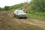 Startovní kopec jsem sbíhal s Ladou, odstartovali jsme jako nejrychlejší velké auto a za buginkou a malým KB. To se brzy utopilo v bahně a tak jsem si sám diktoval tempo. Soupeři byli hodně daleko a tak jsem mohl jet v klidu. No ale asi v půlce okruhu jsem stejně jako v loni udělal na kaluži dětskou chybu a skončil v křoví a polovina startovního pole mě předjela. I když jsem chtěl jet udržovací jízdu, musel jsem zrychlit a po 2. kole už jsem byl druhý a v 7. kole už jsem vedl celé závodní pole. První místo jsme si udrželi i když jsme 2x preventivně měnili polybuše v přední a pak v zadní panhardce, řešili dva defekty a na rozdíl od soupeřů střídali už po 2 hodinách. Když se nám ve 2 hodiny v noci roztrhl kardan, dostal se do čela Valtr. I on se potýkal s drobnými technickými problémy, ale oab jsme měli dostatečná náskok na třetího a další soupeře. Když se nám dopoledne pokazila kardanka řízení, zvýšil Valtr náskok na 3 kola. Čtyři hodiny před koncem střídal Honza s Ladou a protože Valtr kvůli technice zpomalil, bylo rozhodnuto, že dají celé 4 hodiny a nebudeme ztrácet střídáním. Podařilo se jim stáhnout na rozdíl 1 kola a tak se muselo rozhodnout v posledních 20 minutách. Pak se na nás po letech usmálo štěstí (nebo smůla potkala Valtra?) a bezchybně fungující Brouček předjel technickou závadou stojící žlutý Jeep Valtra. Honza mohl s velkou slávou dojet na 1.místě v kategorii Auta nad 2000 ccm a celý tým mohl slavit. SUPER.