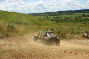 Startovní kopec jsem sbíhal s Ladou, odstartovali jsme jako nejrychlejší velké auto a za buginkou a malým KB. To se brzy utopilo v bahně a tak jsem si sám diktoval tempo. Soupeři byli hodně daleko a tak jsem mohl jet v klidu. No ale asi v půlce okruhu jsem stejně jako v loni udělal na kaluži dětskou chybu a skončil v křoví a polovina startovního pole mě předjela. I když jsem chtěl jet udržovací jízdu, musel jsem zrychlit a po 2. kole už jsem byl druhý a v 7. kole už jsem vedl celé závodní pole. První místo jsme si udrželi i když jsme 2x preventivně měnili polybuše v přední a pak v zadní panhardce, řešili dva defekty a na rozdíl od soupeřů střídali už po 2 hodinách. Když se nám ve 2 hodiny v noci roztrhl kardan, dostal se do čela Valtr. I on se potýkal s drobnými technickými problémy, ale oab jsme měli dostatečná náskok na třetího a další soupeře. Když se nám dopoledne pokazila kardanka řízení, zvýšil Valtr náskok na 3 kola. Čtyři hodiny před koncem střídal Honza s Ladou a protože Valtr kvůli technice zpomalil, bylo rozhodnuto, že dají celé 4 hodiny a nebudeme ztrácet střídáním. Podařilo se jim stáhnout na rozdíl 1 kola a tak se muselo rozhodnout v posledních 20 minutách. Pak se na nás po letech usmálo štěstí (nebo smůla potkala Valtra?) a bezchybně fungující Brouček předjel technickou závadou stojící žlutý Jeep Valtra. Honza mohl s velkou slávou dojet na 1.místě v kategorii Auta nad 2000 ccm a celý tým mohl slavit. SUPER.