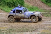 Startovní kopec jsem sbíhal s Ladou, odstartovali jsme jako nejrychlejší velké auto a za buginkou a malým KB. To se brzy utopilo v bahně a tak jsem si sám diktoval tempo. Soupeři byli hodně daleko a tak jsem mohl jet v klidu. No ale asi v půlce okruhu jsem stejně jako v loni udělal na kaluži dětskou chybu a skončil v křoví a polovina startovního pole mě předjela. I když jsem chtěl jet udržovací jízdu, musel jsem zrychlit a po 2. kole už jsem byl druhý a v 7. kole už jsem vedl celé závodní pole. První místo jsme si udrželi i když jsme 2x preventivně měnili polybuše v přední a pak v zadní panhardce, řešili dva defekty a na rozdíl od soupeřů střídali už po 2 hodinách. Když se nám ve 2 hodiny v noci roztrhl kardan, dostal se do čela Valtr. I on se potýkal s drobnými technickými problémy, ale oab jsme měli dostatečná náskok na třetího a další soupeře. Když se nám dopoledne pokazila kardanka řízení, zvýšil Valtr náskok na 3 kola. Čtyři hodiny před koncem střídal Honza s Ladou a protože Valtr kvůli technice zpomalil, bylo rozhodnuto, že dají celé 4 hodiny a nebudeme ztrácet střídáním. Podařilo se jim stáhnout na rozdíl 1 kola a tak se muselo rozhodnout v posledních 20 minutách. Pak se na nás po letech usmálo štěstí (nebo smůla potkala Valtra?) a bezchybně fungující Brouček předjel technickou závadou stojící žlutý Jeep Valtra. Honza mohl s velkou slávou dojet na 1.místě v kategorii Auta nad 2000 ccm a celý tým mohl slavit. SUPER.