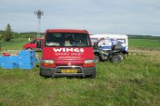 Startovní kopec jsem sbíhal s Ladou, odstartovali jsme jako nejrychlejší velké auto a za buginkou a malým KB. To se brzy utopilo v bahně a tak jsem si sám diktoval tempo. Soupeři byli hodně daleko a tak jsem mohl jet v klidu. No ale asi v půlce okruhu jsem stejně jako v loni udělal na kaluži dětskou chybu a skončil v křoví a polovina startovního pole mě předjela. I když jsem chtěl jet udržovací jízdu, musel jsem zrychlit a po 2. kole už jsem byl druhý a v 7. kole už jsem vedl celé závodní pole. První místo jsme si udrželi i když jsme 2x preventivně měnili polybuše v přední a pak v zadní panhardce, řešili dva defekty a na rozdíl od soupeřů střídali už po 2 hodinách. Když se nám ve 2 hodiny v noci roztrhl kardan, dostal se do čela Valtr. I on se potýkal s drobnými technickými problémy, ale oab jsme měli dostatečná náskok na třetího a další soupeře. Když se nám dopoledne pokazila kardanka řízení, zvýšil Valtr náskok na 3 kola. Čtyři hodiny před koncem střídal Honza s Ladou a protože Valtr kvůli technice zpomalil, bylo rozhodnuto, že dají celé 4 hodiny a nebudeme ztrácet střídáním. Podařilo se jim stáhnout na rozdíl 1 kola a tak se muselo rozhodnout v posledních 20 minutách. Pak se na nás po letech usmálo štěstí (nebo smůla potkala Valtra?) a bezchybně fungující Brouček předjel technickou závadou stojící žlutý Jeep Valtra. Honza mohl s velkou slávou dojet na 1.místě v kategorii Auta nad 2000 ccm a celý tým mohl slavit. SUPER.