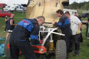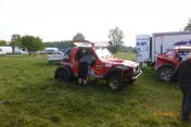 Startovní kopec jsem sbíhal s Ladou, odstartovali jsme jako nejrychlejší velké auto a za buginkou a malým KB. To se brzy utopilo v bahně a tak jsem si sám diktoval tempo. Soupeři byli hodně daleko a tak jsem mohl jet v klidu. No ale asi v půlce okruhu jsem stejně jako v loni udělal na kaluži dětskou chybu a skončil v křoví a polovina startovního pole mě předjela. I když jsem chtěl jet udržovací jízdu, musel jsem zrychlit a po 2. kole už jsem byl druhý a v 7. kole už jsem vedl celé závodní pole. První místo jsme si udrželi i když jsme 2x preventivně měnili polybuše v přední a pak v zadní panhardce, řešili dva defekty a na rozdíl od soupeřů střídali už po 2 hodinách. Když se nám ve 2 hodiny v noci roztrhl kardan, dostal se do čela Valtr. I on se potýkal s drobnými technickými problémy, ale oab jsme měli dostatečná náskok na třetího a další soupeře. Když se nám dopoledne pokazila kardanka řízení, zvýšil Valtr náskok na 3 kola. Čtyři hodiny před koncem střídal Honza s Ladou a protože Valtr kvůli technice zpomalil, bylo rozhodnuto, že dají celé 4 hodiny a nebudeme ztrácet střídáním. Podařilo se jim stáhnout na rozdíl 1 kola a tak se muselo rozhodnout v posledních 20 minutách. Pak se na nás po letech usmálo štěstí (nebo smůla potkala Valtra?) a bezchybně fungující Brouček předjel technickou závadou stojící žlutý Jeep Valtra. Honza mohl s velkou slávou dojet na 1.místě v kategorii Auta nad 2000 ccm a celý tým mohl slavit. SUPER.