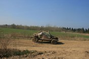 Startovní kopec jsem sbíhal s Ladou, odstartovali jsme jako nejrychlejší velké auto a za buginkou a malým KB. To se brzy utopilo v bahně a tak jsem si sám diktoval tempo. Soupeři byli hodně daleko a tak jsem mohl jet v klidu. No ale asi v půlce okruhu jsem stejně jako v loni udělal na kaluži dětskou chybu a skončil v křoví a polovina startovního pole mě předjela. I když jsem chtěl jet udržovací jízdu, musel jsem zrychlit a po 2. kole už jsem byl druhý a v 7. kole už jsem vedl celé závodní pole. První místo jsme si udrželi i když jsme 2x preventivně měnili polybuše v přední a pak v zadní panhardce, řešili dva defekty a na rozdíl od soupeřů střídali už po 2 hodinách. Když se nám ve 2 hodiny v noci roztrhl kardan, dostal se do čela Valtr. I on se potýkal s drobnými technickými problémy, ale oab jsme měli dostatečná náskok na třetího a další soupeře. Když se nám dopoledne pokazila kardanka řízení, zvýšil Valtr náskok na 3 kola. Čtyři hodiny před koncem střídal Honza s Ladou a protože Valtr kvůli technice zpomalil, bylo rozhodnuto, že dají celé 4 hodiny a nebudeme ztrácet střídáním. Podařilo se jim stáhnout na rozdíl 1 kola a tak se muselo rozhodnout v posledních 20 minutách. Pak se na nás po letech usmálo štěstí (nebo smůla potkala Valtra?) a bezchybně fungující Brouček předjel technickou závadou stojící žlutý Jeep Valtra. Honza mohl s velkou slávou dojet na 1.místě v kategorii Auta nad 2000 ccm a celý tým mohl slavit. SUPER.