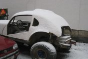 Startovní kopec jsem sbíhal s Ladou, odstartovali jsme jako nejrychlejší velké auto a za buginkou a malým KB. To se brzy utopilo v bahně a tak jsem si sám diktoval tempo. Soupeři byli hodně daleko a tak jsem mohl jet v klidu. No ale asi v půlce okruhu jsem stejně jako v loni udělal na kaluži dětskou chybu a skončil v křoví a polovina startovního pole mě předjela. I když jsem chtěl jet udržovací jízdu, musel jsem zrychlit a po 2. kole už jsem byl druhý a v 7. kole už jsem vedl celé závodní pole. První místo jsme si udrželi i když jsme 2x preventivně měnili polybuše v přední a pak v zadní panhardce, řešili dva defekty a na rozdíl od soupeřů střídali už po 2 hodinách. Když se nám ve 2 hodiny v noci roztrhl kardan, dostal se do čela Valtr. I on se potýkal s drobnými technickými problémy, ale oab jsme měli dostatečná náskok na třetího a další soupeře. Když se nám dopoledne pokazila kardanka řízení, zvýšil Valtr náskok na 3 kola. Čtyři hodiny před koncem střídal Honza s Ladou a protože Valtr kvůli technice zpomalil, bylo rozhodnuto, že dají celé 4 hodiny a nebudeme ztrácet střídáním. Podařilo se jim stáhnout na rozdíl 1 kola a tak se muselo rozhodnout v posledních 20 minutách. Pak se na nás po letech usmálo štěstí (nebo smůla potkala Valtra?) a bezchybně fungující Brouček předjel technickou závadou stojící žlutý Jeep Valtra. Honza mohl s velkou slávou dojet na 1.místě v kategorii Auta nad 2000 ccm a celý tým mohl slavit. SUPER.