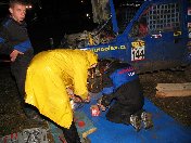 Startovní kopec jsem sbíhal s Ladou, odstartovali jsme jako nejrychlejší velké auto a za buginkou a malým KB. To se brzy utopilo v bahně a tak jsem si sám diktoval tempo. Soupeři byli hodně daleko a tak jsem mohl jet v klidu. No ale asi v půlce okruhu jsem stejně jako v loni udělal na kaluži dětskou chybu a skončil v křoví a polovina startovního pole mě předjela. I když jsem chtěl jet udržovací jízdu, musel jsem zrychlit a po 2. kole už jsem byl druhý a v 7. kole už jsem vedl celé závodní pole. První místo jsme si udrželi i když jsme 2x preventivně měnili polybuše v přední a pak v zadní panhardce, řešili dva defekty a na rozdíl od soupeřů střídali už po 2 hodinách. Když se nám ve 2 hodiny v noci roztrhl kardan, dostal se do čela Valtr. I on se potýkal s drobnými technickými problémy, ale oab jsme měli dostatečná náskok na třetího a další soupeře. Když se nám dopoledne pokazila kardanka řízení, zvýšil Valtr náskok na 3 kola. Čtyři hodiny před koncem střídal Honza s Ladou a protože Valtr kvůli technice zpomalil, bylo rozhodnuto, že dají celé 4 hodiny a nebudeme ztrácet střídáním. Podařilo se jim stáhnout na rozdíl 1 kola a tak se muselo rozhodnout v posledních 20 minutách. Pak se na nás po letech usmálo štěstí (nebo smůla potkala Valtra?) a bezchybně fungující Brouček předjel technickou závadou stojící žlutý Jeep Valtra. Honza mohl s velkou slávou dojet na 1.místě v kategorii Auta nad 2000 ccm a celý tým mohl slavit. SUPER.