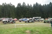 Startovní kopec jsem sbíhal s Ladou, odstartovali jsme jako nejrychlejší velké auto a za buginkou a malým KB. To se brzy utopilo v bahně a tak jsem si sám diktoval tempo. Soupeři byli hodně daleko a tak jsem mohl jet v klidu. No ale asi v půlce okruhu jsem stejně jako v loni udělal na kaluži dětskou chybu a skončil v křoví a polovina startovního pole mě předjela. I když jsem chtěl jet udržovací jízdu, musel jsem zrychlit a po 2. kole už jsem byl druhý a v 7. kole už jsem vedl celé závodní pole. První místo jsme si udrželi i když jsme 2x preventivně měnili polybuše v přední a pak v zadní panhardce, řešili dva defekty a na rozdíl od soupeřů střídali už po 2 hodinách. Když se nám ve 2 hodiny v noci roztrhl kardan, dostal se do čela Valtr. I on se potýkal s drobnými technickými problémy, ale oab jsme měli dostatečná náskok na třetího a další soupeře. Když se nám dopoledne pokazila kardanka řízení, zvýšil Valtr náskok na 3 kola. Čtyři hodiny před koncem střídal Honza s Ladou a protože Valtr kvůli technice zpomalil, bylo rozhodnuto, že dají celé 4 hodiny a nebudeme ztrácet střídáním. Podařilo se jim stáhnout na rozdíl 1 kola a tak se muselo rozhodnout v posledních 20 minutách. Pak se na nás po letech usmálo štěstí (nebo smůla potkala Valtra?) a bezchybně fungující Brouček předjel technickou závadou stojící žlutý Jeep Valtra. Honza mohl s velkou slávou dojet na 1.místě v kategorii Auta nad 2000 ccm a celý tým mohl slavit. SUPER.