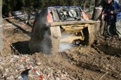 Startovní kopec jsem sbíhal s Ladou, odstartovali jsme jako nejrychlejší velké auto a za buginkou a malým KB. To se brzy utopilo v bahně a tak jsem si sám diktoval tempo. Soupeři byli hodně daleko a tak jsem mohl jet v klidu. No ale asi v půlce okruhu jsem stejně jako v loni udělal na kaluži dětskou chybu a skončil v křoví a polovina startovního pole mě předjela. I když jsem chtěl jet udržovací jízdu, musel jsem zrychlit a po 2. kole už jsem byl druhý a v 7. kole už jsem vedl celé závodní pole. První místo jsme si udrželi i když jsme 2x preventivně měnili polybuše v přední a pak v zadní panhardce, řešili dva defekty a na rozdíl od soupeřů střídali už po 2 hodinách. Když se nám ve 2 hodiny v noci roztrhl kardan, dostal se do čela Valtr. I on se potýkal s drobnými technickými problémy, ale oab jsme měli dostatečná náskok na třetího a další soupeře. Když se nám dopoledne pokazila kardanka řízení, zvýšil Valtr náskok na 3 kola. Čtyři hodiny před koncem střídal Honza s Ladou a protože Valtr kvůli technice zpomalil, bylo rozhodnuto, že dají celé 4 hodiny a nebudeme ztrácet střídáním. Podařilo se jim stáhnout na rozdíl 1 kola a tak se muselo rozhodnout v posledních 20 minutách. Pak se na nás po letech usmálo štěstí (nebo smůla potkala Valtra?) a bezchybně fungující Brouček předjel technickou závadou stojící žlutý Jeep Valtra. Honza mohl s velkou slávou dojet na 1.místě v kategorii Auta nad 2000 ccm a celý tým mohl slavit. SUPER.