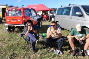 Startovní kopec jsem sbíhal s Ladou, odstartovali jsme jako nejrychlejší velké auto a za buginkou a malým KB. To se brzy utopilo v bahně a tak jsem si sám diktoval tempo. Soupeři byli hodně daleko a tak jsem mohl jet v klidu. No ale asi v půlce okruhu jsem stejně jako v loni udělal na kaluži dětskou chybu a skončil v křoví a polovina startovního pole mě předjela. I když jsem chtěl jet udržovací jízdu, musel jsem zrychlit a po 2. kole už jsem byl druhý a v 7. kole už jsem vedl celé závodní pole. První místo jsme si udrželi i když jsme 2x preventivně měnili polybuše v přední a pak v zadní panhardce, řešili dva defekty a na rozdíl od soupeřů střídali už po 2 hodinách. Když se nám ve 2 hodiny v noci roztrhl kardan, dostal se do čela Valtr. I on se potýkal s drobnými technickými problémy, ale oab jsme měli dostatečná náskok na třetího a další soupeře. Když se nám dopoledne pokazila kardanka řízení, zvýšil Valtr náskok na 3 kola. Čtyři hodiny před koncem střídal Honza s Ladou a protože Valtr kvůli technice zpomalil, bylo rozhodnuto, že dají celé 4 hodiny a nebudeme ztrácet střídáním. Podařilo se jim stáhnout na rozdíl 1 kola a tak se muselo rozhodnout v posledních 20 minutách. Pak se na nás po letech usmálo štěstí (nebo smůla potkala Valtra?) a bezchybně fungující Brouček předjel technickou závadou stojící žlutý Jeep Valtra. Honza mohl s velkou slávou dojet na 1.místě v kategorii Auta nad 2000 ccm a celý tým mohl slavit. SUPER.