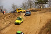 Startovní kopec jsem sbíhal s Ladou, odstartovali jsme jako nejrychlejší velké auto a za buginkou a malým KB. To se brzy utopilo v bahně a tak jsem si sám diktoval tempo. Soupeři byli hodně daleko a tak jsem mohl jet v klidu. No ale asi v půlce okruhu jsem stejně jako v loni udělal na kaluži dětskou chybu a skončil v křoví a polovina startovního pole mě předjela. I když jsem chtěl jet udržovací jízdu, musel jsem zrychlit a po 2. kole už jsem byl druhý a v 7. kole už jsem vedl celé závodní pole. První místo jsme si udrželi i když jsme 2x preventivně měnili polybuše v přední a pak v zadní panhardce, řešili dva defekty a na rozdíl od soupeřů střídali už po 2 hodinách. Když se nám ve 2 hodiny v noci roztrhl kardan, dostal se do čela Valtr. I on se potýkal s drobnými technickými problémy, ale oab jsme měli dostatečná náskok na třetího a další soupeře. Když se nám dopoledne pokazila kardanka řízení, zvýšil Valtr náskok na 3 kola. Čtyři hodiny před koncem střídal Honza s Ladou a protože Valtr kvůli technice zpomalil, bylo rozhodnuto, že dají celé 4 hodiny a nebudeme ztrácet střídáním. Podařilo se jim stáhnout na rozdíl 1 kola a tak se muselo rozhodnout v posledních 20 minutách. Pak se na nás po letech usmálo štěstí (nebo smůla potkala Valtra?) a bezchybně fungující Brouček předjel technickou závadou stojící žlutý Jeep Valtra. Honza mohl s velkou slávou dojet na 1.místě v kategorii Auta nad 2000 ccm a celý tým mohl slavit. SUPER.