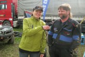 Startovní kopec jsem sbíhal s Ladou, odstartovali jsme jako nejrychlejší velké auto a za buginkou a malým KB. To se brzy utopilo v bahně a tak jsem si sám diktoval tempo. Soupeři byli hodně daleko a tak jsem mohl jet v klidu. No ale asi v půlce okruhu jsem stejně jako v loni udělal na kaluži dětskou chybu a skončil v křoví a polovina startovního pole mě předjela. I když jsem chtěl jet udržovací jízdu, musel jsem zrychlit a po 2. kole už jsem byl druhý a v 7. kole už jsem vedl celé závodní pole. První místo jsme si udrželi i když jsme 2x preventivně měnili polybuše v přední a pak v zadní panhardce, řešili dva defekty a na rozdíl od soupeřů střídali už po 2 hodinách. Když se nám ve 2 hodiny v noci roztrhl kardan, dostal se do čela Valtr. I on se potýkal s drobnými technickými problémy, ale oab jsme měli dostatečná náskok na třetího a další soupeře. Když se nám dopoledne pokazila kardanka řízení, zvýšil Valtr náskok na 3 kola. Čtyři hodiny před koncem střídal Honza s Ladou a protože Valtr kvůli technice zpomalil, bylo rozhodnuto, že dají celé 4 hodiny a nebudeme ztrácet střídáním. Podařilo se jim stáhnout na rozdíl 1 kola a tak se muselo rozhodnout v posledních 20 minutách. Pak se na nás po letech usmálo štěstí (nebo smůla potkala Valtra?) a bezchybně fungující Brouček předjel technickou závadou stojící žlutý Jeep Valtra. Honza mohl s velkou slávou dojet na 1.místě v kategorii Auta nad 2000 ccm a celý tým mohl slavit. SUPER.