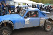 Startovní kopec jsem sbíhal s Ladou, odstartovali jsme jako nejrychlejší velké auto a za buginkou a malým KB. To se brzy utopilo v bahně a tak jsem si sám diktoval tempo. Soupeři byli hodně daleko a tak jsem mohl jet v klidu. No ale asi v půlce okruhu jsem stejně jako v loni udělal na kaluži dětskou chybu a skončil v křoví a polovina startovního pole mě předjela. I když jsem chtěl jet udržovací jízdu, musel jsem zrychlit a po 2. kole už jsem byl druhý a v 7. kole už jsem vedl celé závodní pole. První místo jsme si udrželi i když jsme 2x preventivně měnili polybuše v přední a pak v zadní panhardce, řešili dva defekty a na rozdíl od soupeřů střídali už po 2 hodinách. Když se nám ve 2 hodiny v noci roztrhl kardan, dostal se do čela Valtr. I on se potýkal s drobnými technickými problémy, ale oab jsme měli dostatečná náskok na třetího a další soupeře. Když se nám dopoledne pokazila kardanka řízení, zvýšil Valtr náskok na 3 kola. Čtyři hodiny před koncem střídal Honza s Ladou a protože Valtr kvůli technice zpomalil, bylo rozhodnuto, že dají celé 4 hodiny a nebudeme ztrácet střídáním. Podařilo se jim stáhnout na rozdíl 1 kola a tak se muselo rozhodnout v posledních 20 minutách. Pak se na nás po letech usmálo štěstí (nebo smůla potkala Valtra?) a bezchybně fungující Brouček předjel technickou závadou stojící žlutý Jeep Valtra. Honza mohl s velkou slávou dojet na 1.místě v kategorii Auta nad 2000 ccm a celý tým mohl slavit. SUPER.