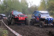 Startovní kopec jsem sbíhal s Ladou, odstartovali jsme jako nejrychlejší velké auto a za buginkou a malým KB. To se brzy utopilo v bahně a tak jsem si sám diktoval tempo. Soupeři byli hodně daleko a tak jsem mohl jet v klidu. No ale asi v půlce okruhu jsem stejně jako v loni udělal na kaluži dětskou chybu a skončil v křoví a polovina startovního pole mě předjela. I když jsem chtěl jet udržovací jízdu, musel jsem zrychlit a po 2. kole už jsem byl druhý a v 7. kole už jsem vedl celé závodní pole. První místo jsme si udrželi i když jsme 2x preventivně měnili polybuše v přední a pak v zadní panhardce, řešili dva defekty a na rozdíl od soupeřů střídali už po 2 hodinách. Když se nám ve 2 hodiny v noci roztrhl kardan, dostal se do čela Valtr. I on se potýkal s drobnými technickými problémy, ale oab jsme měli dostatečná náskok na třetího a další soupeře. Když se nám dopoledne pokazila kardanka řízení, zvýšil Valtr náskok na 3 kola. Čtyři hodiny před koncem střídal Honza s Ladou a protože Valtr kvůli technice zpomalil, bylo rozhodnuto, že dají celé 4 hodiny a nebudeme ztrácet střídáním. Podařilo se jim stáhnout na rozdíl 1 kola a tak se muselo rozhodnout v posledních 20 minutách. Pak se na nás po letech usmálo štěstí (nebo smůla potkala Valtra?) a bezchybně fungující Brouček předjel technickou závadou stojící žlutý Jeep Valtra. Honza mohl s velkou slávou dojet na 1.místě v kategorii Auta nad 2000 ccm a celý tým mohl slavit. SUPER.