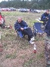 Startovní kopec jsem sbíhal s Ladou, odstartovali jsme jako nejrychlejší velké auto a za buginkou a malým KB. To se brzy utopilo v bahně a tak jsem si sám diktoval tempo. Soupeři byli hodně daleko a tak jsem mohl jet v klidu. No ale asi v půlce okruhu jsem stejně jako v loni udělal na kaluži dětskou chybu a skončil v křoví a polovina startovního pole mě předjela. I když jsem chtěl jet udržovací jízdu, musel jsem zrychlit a po 2. kole už jsem byl druhý a v 7. kole už jsem vedl celé závodní pole. První místo jsme si udrželi i když jsme 2x preventivně měnili polybuše v přední a pak v zadní panhardce, řešili dva defekty a na rozdíl od soupeřů střídali už po 2 hodinách. Když se nám ve 2 hodiny v noci roztrhl kardan, dostal se do čela Valtr. I on se potýkal s drobnými technickými problémy, ale oab jsme měli dostatečná náskok na třetího a další soupeře. Když se nám dopoledne pokazila kardanka řízení, zvýšil Valtr náskok na 3 kola. Čtyři hodiny před koncem střídal Honza s Ladou a protože Valtr kvůli technice zpomalil, bylo rozhodnuto, že dají celé 4 hodiny a nebudeme ztrácet střídáním. Podařilo se jim stáhnout na rozdíl 1 kola a tak se muselo rozhodnout v posledních 20 minutách. Pak se na nás po letech usmálo štěstí (nebo smůla potkala Valtra?) a bezchybně fungující Brouček předjel technickou závadou stojící žlutý Jeep Valtra. Honza mohl s velkou slávou dojet na 1.místě v kategorii Auta nad 2000 ccm a celý tým mohl slavit. SUPER.