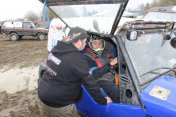 Startovní kopec jsem sbíhal s Ladou, odstartovali jsme jako nejrychlejší velké auto a za buginkou a malým KB. To se brzy utopilo v bahně a tak jsem si sám diktoval tempo. Soupeři byli hodně daleko a tak jsem mohl jet v klidu. No ale asi v půlce okruhu jsem stejně jako v loni udělal na kaluži dětskou chybu a skončil v křoví a polovina startovního pole mě předjela. I když jsem chtěl jet udržovací jízdu, musel jsem zrychlit a po 2. kole už jsem byl druhý a v 7. kole už jsem vedl celé závodní pole. První místo jsme si udrželi i když jsme 2x preventivně měnili polybuše v přední a pak v zadní panhardce, řešili dva defekty a na rozdíl od soupeřů střídali už po 2 hodinách. Když se nám ve 2 hodiny v noci roztrhl kardan, dostal se do čela Valtr. I on se potýkal s drobnými technickými problémy, ale oab jsme měli dostatečná náskok na třetího a další soupeře. Když se nám dopoledne pokazila kardanka řízení, zvýšil Valtr náskok na 3 kola. Čtyři hodiny před koncem střídal Honza s Ladou a protože Valtr kvůli technice zpomalil, bylo rozhodnuto, že dají celé 4 hodiny a nebudeme ztrácet střídáním. Podařilo se jim stáhnout na rozdíl 1 kola a tak se muselo rozhodnout v posledních 20 minutách. Pak se na nás po letech usmálo štěstí (nebo smůla potkala Valtra?) a bezchybně fungující Brouček předjel technickou závadou stojící žlutý Jeep Valtra. Honza mohl s velkou slávou dojet na 1.místě v kategorii Auta nad 2000 ccm a celý tým mohl slavit. SUPER.