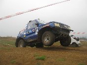 Startovní kopec jsem sbíhal s Ladou, odstartovali jsme jako nejrychlejší velké auto a za buginkou a malým KB. To se brzy utopilo v bahně a tak jsem si sám diktoval tempo. Soupeři byli hodně daleko a tak jsem mohl jet v klidu. No ale asi v půlce okruhu jsem stejně jako v loni udělal na kaluži dětskou chybu a skončil v křoví a polovina startovního pole mě předjela. I když jsem chtěl jet udržovací jízdu, musel jsem zrychlit a po 2. kole už jsem byl druhý a v 7. kole už jsem vedl celé závodní pole. První místo jsme si udrželi i když jsme 2x preventivně měnili polybuše v přední a pak v zadní panhardce, řešili dva defekty a na rozdíl od soupeřů střídali už po 2 hodinách. Když se nám ve 2 hodiny v noci roztrhl kardan, dostal se do čela Valtr. I on se potýkal s drobnými technickými problémy, ale oab jsme měli dostatečná náskok na třetího a další soupeře. Když se nám dopoledne pokazila kardanka řízení, zvýšil Valtr náskok na 3 kola. Čtyři hodiny před koncem střídal Honza s Ladou a protože Valtr kvůli technice zpomalil, bylo rozhodnuto, že dají celé 4 hodiny a nebudeme ztrácet střídáním. Podařilo se jim stáhnout na rozdíl 1 kola a tak se muselo rozhodnout v posledních 20 minutách. Pak se na nás po letech usmálo štěstí (nebo smůla potkala Valtra?) a bezchybně fungující Brouček předjel technickou závadou stojící žlutý Jeep Valtra. Honza mohl s velkou slávou dojet na 1.místě v kategorii Auta nad 2000 ccm a celý tým mohl slavit. SUPER.