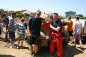 Startovní kopec jsem sbíhal s Ladou, odstartovali jsme jako nejrychlejší velké auto a za buginkou a malým KB. To se brzy utopilo v bahně a tak jsem si sám diktoval tempo. Soupeři byli hodně daleko a tak jsem mohl jet v klidu. No ale asi v půlce okruhu jsem stejně jako v loni udělal na kaluži dětskou chybu a skončil v křoví a polovina startovního pole mě předjela. I když jsem chtěl jet udržovací jízdu, musel jsem zrychlit a po 2. kole už jsem byl druhý a v 7. kole už jsem vedl celé závodní pole. První místo jsme si udrželi i když jsme 2x preventivně měnili polybuše v přední a pak v zadní panhardce, řešili dva defekty a na rozdíl od soupeřů střídali už po 2 hodinách. Když se nám ve 2 hodiny v noci roztrhl kardan, dostal se do čela Valtr. I on se potýkal s drobnými technickými problémy, ale oab jsme měli dostatečná náskok na třetího a další soupeře. Když se nám dopoledne pokazila kardanka řízení, zvýšil Valtr náskok na 3 kola. Čtyři hodiny před koncem střídal Honza s Ladou a protože Valtr kvůli technice zpomalil, bylo rozhodnuto, že dají celé 4 hodiny a nebudeme ztrácet střídáním. Podařilo se jim stáhnout na rozdíl 1 kola a tak se muselo rozhodnout v posledních 20 minutách. Pak se na nás po letech usmálo štěstí (nebo smůla potkala Valtra?) a bezchybně fungující Brouček předjel technickou závadou stojící žlutý Jeep Valtra. Honza mohl s velkou slávou dojet na 1.místě v kategorii Auta nad 2000 ccm a celý tým mohl slavit. SUPER.