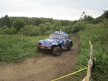 Startovní kopec jsem sbíhal s Ladou, odstartovali jsme jako nejrychlejší velké auto a za buginkou a malým KB. To se brzy utopilo v bahně a tak jsem si sám diktoval tempo. Soupeři byli hodně daleko a tak jsem mohl jet v klidu. No ale asi v půlce okruhu jsem stejně jako v loni udělal na kaluži dětskou chybu a skončil v křoví a polovina startovního pole mě předjela. I když jsem chtěl jet udržovací jízdu, musel jsem zrychlit a po 2. kole už jsem byl druhý a v 7. kole už jsem vedl celé závodní pole. První místo jsme si udrželi i když jsme 2x preventivně měnili polybuše v přední a pak v zadní panhardce, řešili dva defekty a na rozdíl od soupeřů střídali už po 2 hodinách. Když se nám ve 2 hodiny v noci roztrhl kardan, dostal se do čela Valtr. I on se potýkal s drobnými technickými problémy, ale oab jsme měli dostatečná náskok na třetího a další soupeře. Když se nám dopoledne pokazila kardanka řízení, zvýšil Valtr náskok na 3 kola. Čtyři hodiny před koncem střídal Honza s Ladou a protože Valtr kvůli technice zpomalil, bylo rozhodnuto, že dají celé 4 hodiny a nebudeme ztrácet střídáním. Podařilo se jim stáhnout na rozdíl 1 kola a tak se muselo rozhodnout v posledních 20 minutách. Pak se na nás po letech usmálo štěstí (nebo smůla potkala Valtra?) a bezchybně fungující Brouček předjel technickou závadou stojící žlutý Jeep Valtra. Honza mohl s velkou slávou dojet na 1.místě v kategorii Auta nad 2000 ccm a celý tým mohl slavit. SUPER.