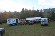 Startovní kopec jsem sbíhal s Ladou, odstartovali jsme jako nejrychlejší velké auto a za buginkou a malým KB. To se brzy utopilo v bahně a tak jsem si sám diktoval tempo. Soupeři byli hodně daleko a tak jsem mohl jet v klidu. No ale asi v půlce okruhu jsem stejně jako v loni udělal na kaluži dětskou chybu a skončil v křoví a polovina startovního pole mě předjela. I když jsem chtěl jet udržovací jízdu, musel jsem zrychlit a po 2. kole už jsem byl druhý a v 7. kole už jsem vedl celé závodní pole. První místo jsme si udrželi i když jsme 2x preventivně měnili polybuše v přední a pak v zadní panhardce, řešili dva defekty a na rozdíl od soupeřů střídali už po 2 hodinách. Když se nám ve 2 hodiny v noci roztrhl kardan, dostal se do čela Valtr. I on se potýkal s drobnými technickými problémy, ale oab jsme měli dostatečná náskok na třetího a další soupeře. Když se nám dopoledne pokazila kardanka řízení, zvýšil Valtr náskok na 3 kola. Čtyři hodiny před koncem střídal Honza s Ladou a protože Valtr kvůli technice zpomalil, bylo rozhodnuto, že dají celé 4 hodiny a nebudeme ztrácet střídáním. Podařilo se jim stáhnout na rozdíl 1 kola a tak se muselo rozhodnout v posledních 20 minutách. Pak se na nás po letech usmálo štěstí (nebo smůla potkala Valtra?) a bezchybně fungující Brouček předjel technickou závadou stojící žlutý Jeep Valtra. Honza mohl s velkou slávou dojet na 1.místě v kategorii Auta nad 2000 ccm a celý tým mohl slavit. SUPER.
