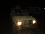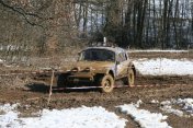 Startovní kopec jsem sbíhal s Ladou, odstartovali jsme jako nejrychlejší velké auto a za buginkou a malým KB. To se brzy utopilo v bahně a tak jsem si sám diktoval tempo. Soupeři byli hodně daleko a tak jsem mohl jet v klidu. No ale asi v půlce okruhu jsem stejně jako v loni udělal na kaluži dětskou chybu a skončil v křoví a polovina startovního pole mě předjela. I když jsem chtěl jet udržovací jízdu, musel jsem zrychlit a po 2. kole už jsem byl druhý a v 7. kole už jsem vedl celé závodní pole. První místo jsme si udrželi i když jsme 2x preventivně měnili polybuše v přední a pak v zadní panhardce, řešili dva defekty a na rozdíl od soupeřů střídali už po 2 hodinách. Když se nám ve 2 hodiny v noci roztrhl kardan, dostal se do čela Valtr. I on se potýkal s drobnými technickými problémy, ale oab jsme měli dostatečná náskok na třetího a další soupeře. Když se nám dopoledne pokazila kardanka řízení, zvýšil Valtr náskok na 3 kola. Čtyři hodiny před koncem střídal Honza s Ladou a protože Valtr kvůli technice zpomalil, bylo rozhodnuto, že dají celé 4 hodiny a nebudeme ztrácet střídáním. Podařilo se jim stáhnout na rozdíl 1 kola a tak se muselo rozhodnout v posledních 20 minutách. Pak se na nás po letech usmálo štěstí (nebo smůla potkala Valtra?) a bezchybně fungující Brouček předjel technickou závadou stojící žlutý Jeep Valtra. Honza mohl s velkou slávou dojet na 1.místě v kategorii Auta nad 2000 ccm a celý tým mohl slavit. SUPER.