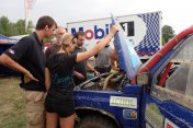 Odpoledne se na start postavily auta a byl to tvrdý boj. Trať byla hodně dlouhá, bez extrémních sjezdů, výjezdů a bláta. My jsme si opět vybrali svou porci smůly. V kategorii velkých i malých aut všichni od 1. až do 4. místa byli v kole a rozhodoval jen čas. Pepe v prvním kole vytrhl disk a pak odešel ventilátor a ztáta už nešla dojet. Vitarka měla smůly také kopec, ta ale souvisela s "dětskými nemocmi", je to vpodstatě nové auto. Nejprve nedržela přední kapota, pak defekt, po pár kolech nám vypadlo z úchytu plynové lanko a nakonec se povolily matice na kole, šroby se vytrhly z náboje a oprava trvala víc jak půl hodiny. Jinak auto šlapalo jako hodinky.